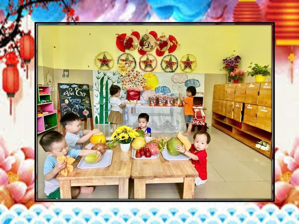 Tết Trung thu năm nay, các bé lớp nhà trẻ D3 Trường Mầm non Long Biên vui hơn rất nhiều khi lần đầu tiên được cùng các cô giáo và các bạn được tự tay chuẩn bị cho việc trang trí, trình bày mâm ngũ quả của lớp. Vẻ mặt cháu nào cũng ánh lên sự hồn nhiên, vui tươi, phấn khởi… chỉ sau một thời gian ngắn, cô và trò đã trang trí xong mâm ngũ quả lung linh và rực rỡ.