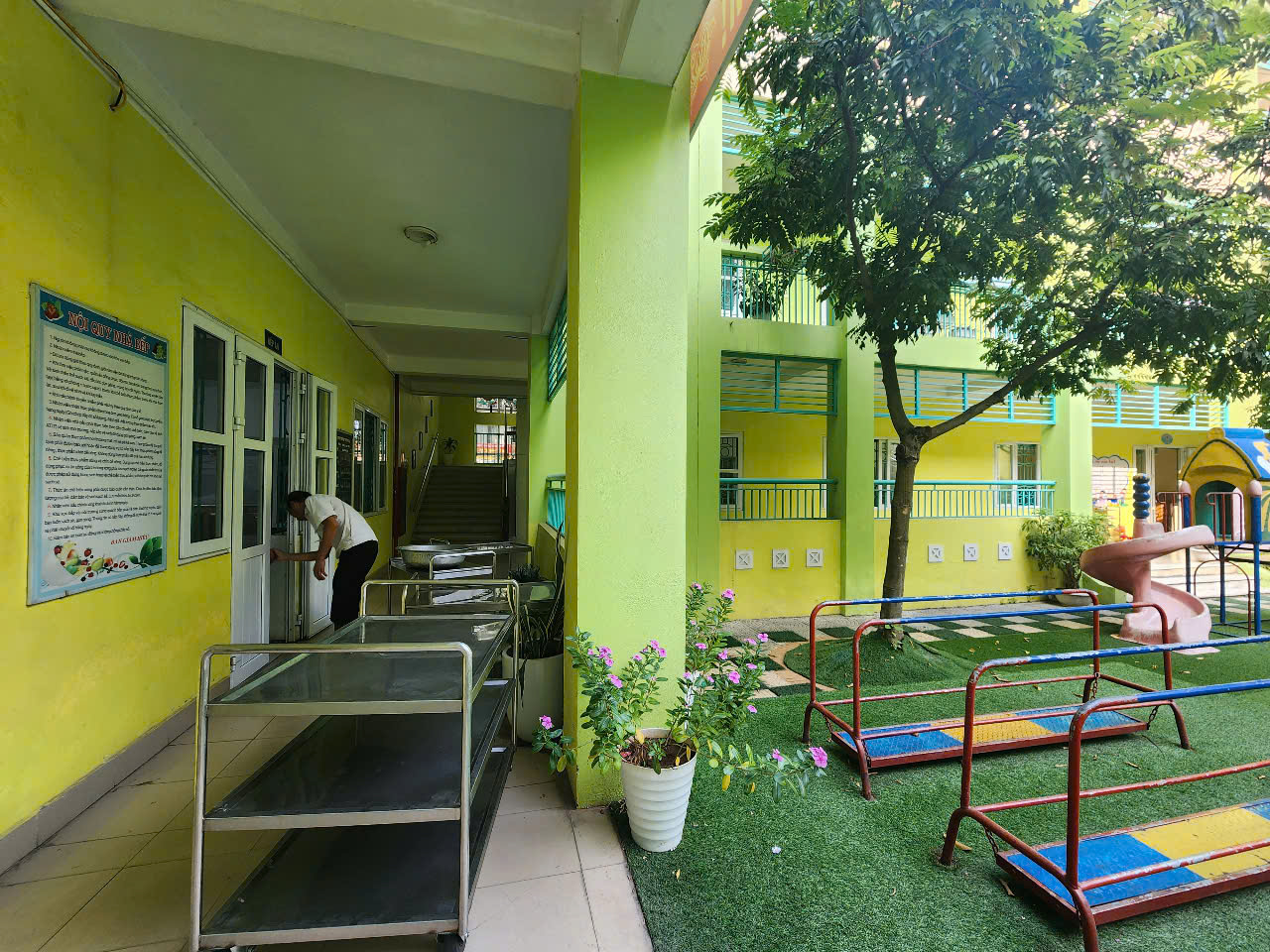 Một môi trường sống trong lành, một môi trường học tập sạch sẽ, đảm bảo an toàn vệ sinh luôn là mục tiêu hướng tới của tập thể Trường mầm non Long Biên Nhằm duy trì và giữ gìn môi trường sáng, xanh, sạch đẹp hàng ngày tại trường mầm non Long Biên, BGH nhà trường đã luôn chú trọng việc nâng cao ý thức giữ gìn và bảo vệ môi trường cho 100% đội ngũ GV, NV và học sinh với những việc làm thiết thực. Nghiêm túc thực hiện theo lịch vệ sinh hằng ngày, hàng tuần tại các lớp, các phòng chức năng, hệ thống phòng hiệu bộ, khu vực bếp ăn, sân chơi, vườn cây, khu vệ sinh … là việc làm thường xuyên của các cô Trường Mầm non Long Biên.