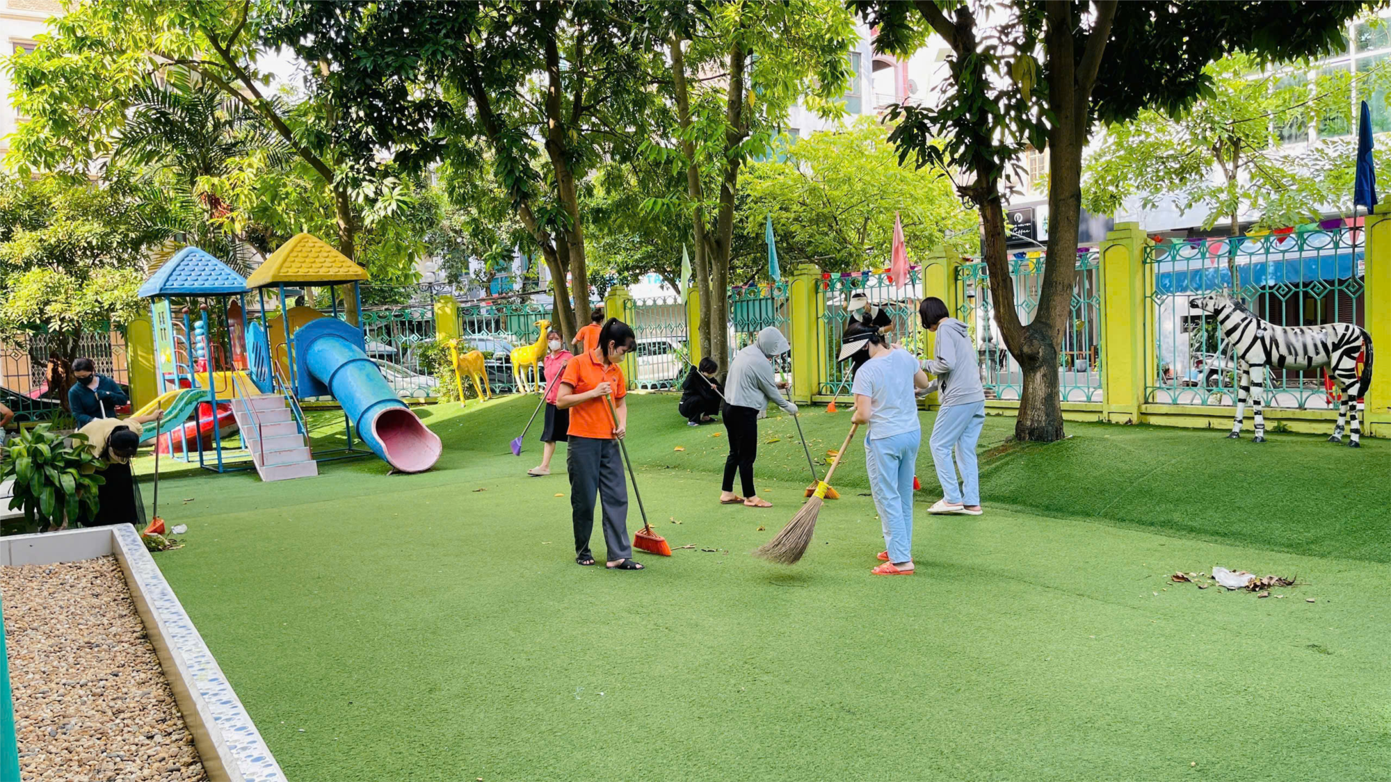 Ngày 05/9/2025, CBGVNV trường MN Long Biên tổ chức ra quân tổng vệ sinh môi trường cuối tuần, tạo khuôn viên trường luôn sạch sẽ, gọn gàng, cảnh quan được duy trì sáng – xanh- sạch- đẹp.