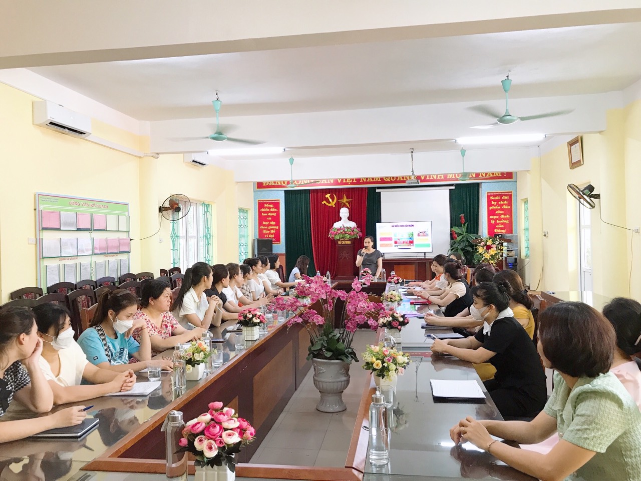 Vào hồi 16h00 ngày 17/5/2023 Ban giám hiệu nhà trường đã họp với trưởng ban cha mẹ học sinh của các lớp tại phòng Hội đồng của nhà trường. Chủ trì cuộc họp là đồng chí Đỗ Thị thanh Nhâm – Bí thư chi bộ - Hiệu trưởng nhà trường. Và sự có mặt của các đồng chí trong Ban giám hiệu cùng đại diện giáo viên, trưởng ban phụ huynh của các lớp. Tại đây, đồng chí Hiệu trưởng đã báo cáo những kết quả đạt được của nhà trường trong năm học vừa qua. Với sự nỗ lực cố gắng phấn đấu của tập thể CBGVNV cùng với sự phối kết hợp ủng hộ nhiệt tình của các bậc phụ huynh nên nhà trường đã đạt được nhiều thành tích trong năm học 2022- 2023.