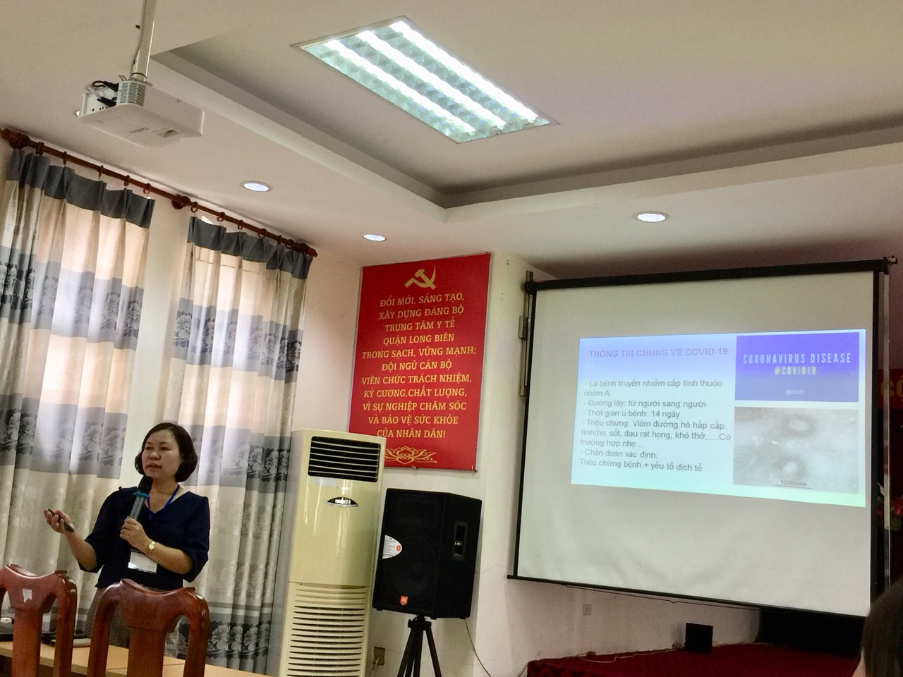 Trong buổi tập huấn có đ/c Nguyễn Thị Chinh - Phó khoa y tế công cộng - Trung tâm y tế quận Long Biên làm báo cáo viên.