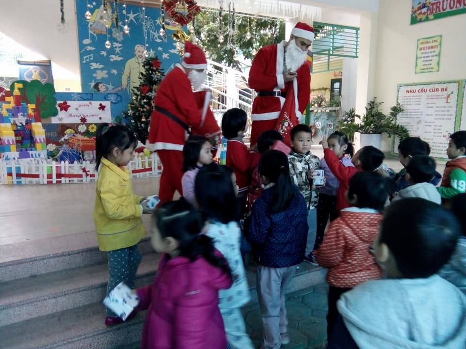 Lại một mùa giáng sinh đã về trong những ngọn gió se lạnh và những tia nắng mong manh của tiết trời giao mùa. Noel 2017 của trường Mầm non Long Biên càng lung linh, rực rỡ hơn bởi những cây thông đủ mầu sắc và một sân khấu trang hoàng lộng lẫy để cháo đón noel. Từ rất nhiều ngày trước, cô và trò trường MN Long Biên đã háo hức tham gia vào các hoạt động như trang trí lớp, trang trí cây thông chính vì vậy mà lớp nào cũng có một cây thông rất đẹp để chào đón noel. Những tiếng nhạc giáng sinh vang lên đã làm cho bầu không khí trở nên ấm áp và vô cùng náo nhiệt. Bé nào cũng háo hức đến trường thật sớm để được gặp và nhận những món quà đáng yêu và ngộ ngĩnh của ông già noel. Giáng sinh đã tràn ngập khắp mọi nơi và trong mùa giáng sinh này xin chúc các bé học sinh trường mầm non Long Biên có một giáng sinh an lành, hạnh phúc và luôn luôn tràn ngập niềm vui
