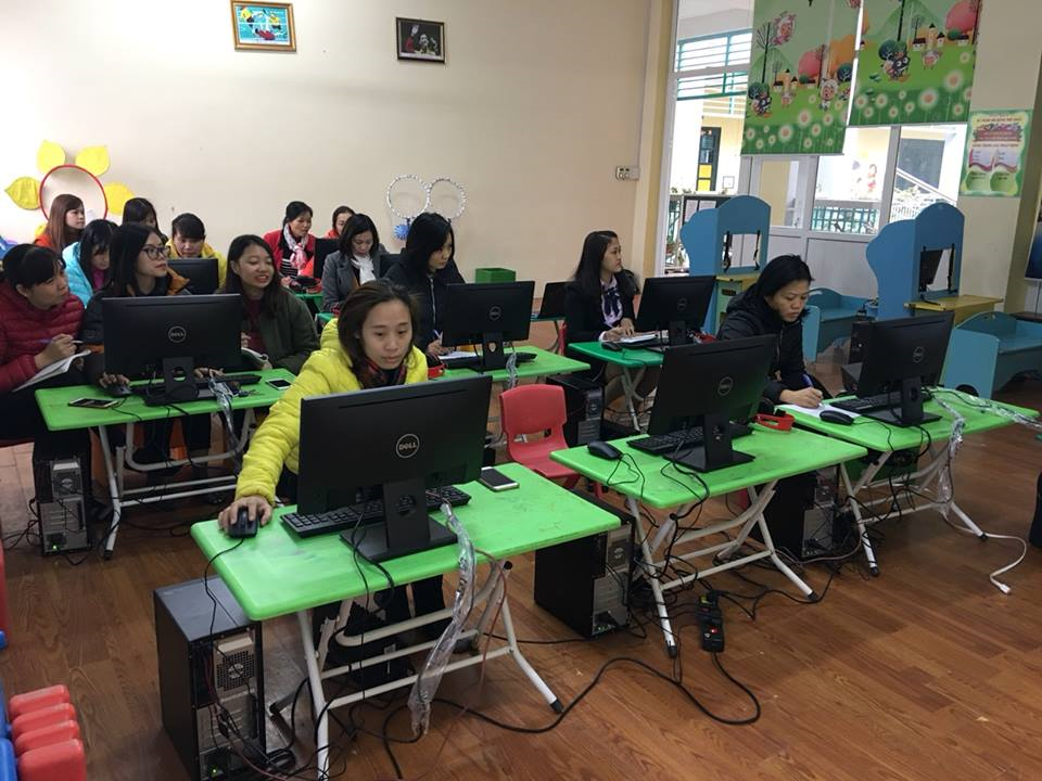 Để giúp giáo viên tích cực ứng dụng CNTT vào trong giảng dạy ngày 23/12/2017, trường MN Long Biên đã tổ chức tập huấn kỹ năng làm bài giảng Elearning cho đội ngũ giáo viên trong trường. Trực tiếp giảng dạy và hướng dẫn cách làm bài giảng điện tử là đ/c Đàm Quang Huy cán bộ phụ trách CNTT của trường tiểu học Long Biên. Trong buổi tập huấn giáo viên đã truyền đạt những kiến thức, kỹ năng cơ bản để xây dựng bài giảng Elearning. Qua đó giúp giáo viên biết cách sử dụng thành thạo các phần mềm để thiết kế bài giảng Elearning một cách đơn giản và hiệu quả nhất. Buổi tập huấn về CNTT đã thực sự bổ ích cho GV, nhằm nâng cao chất lượng GD trong nhà trường, đồng thời giúp giáo viên tích cực ứng dụng CNTT vào trong giảng dạy và đưa chuyên môn nhà trường ngày một đi lên.